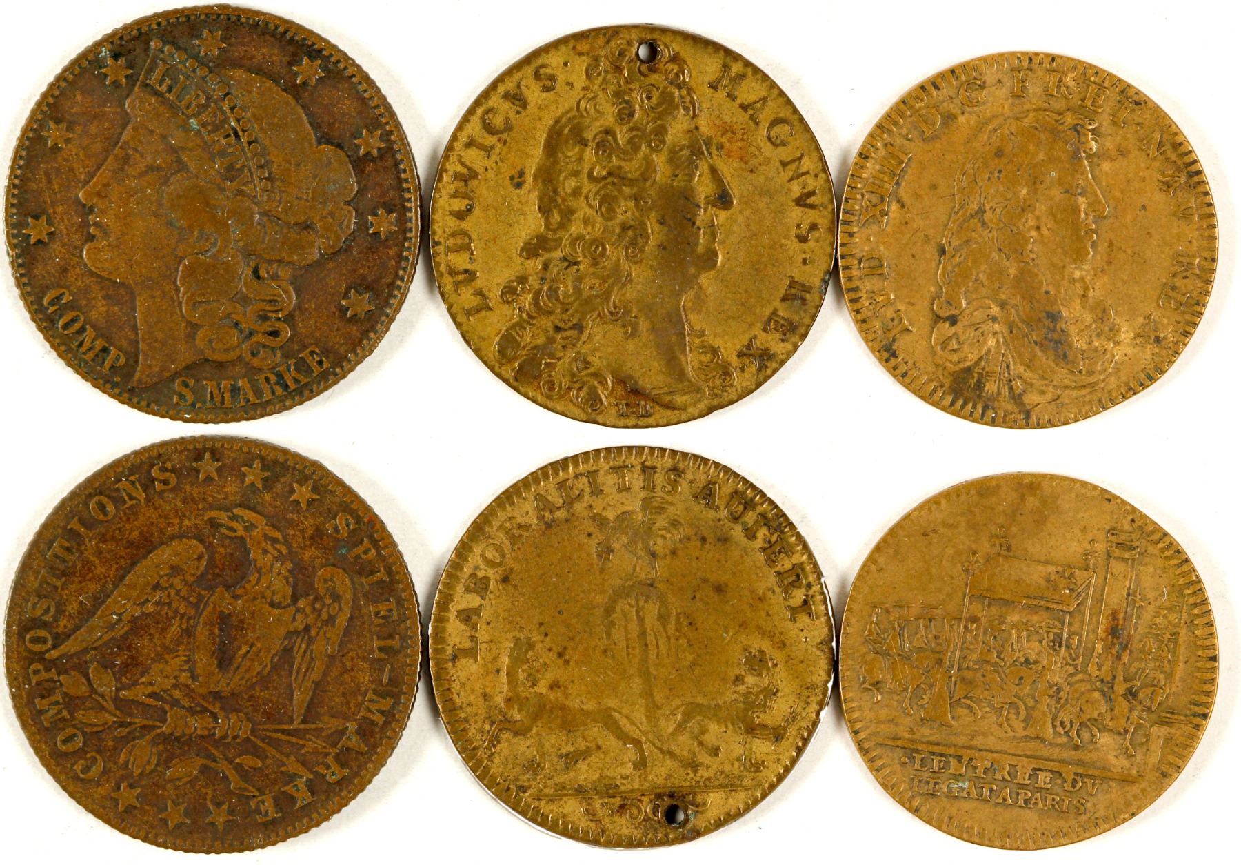 Lot of three pieces. 1) Compositions S. Marke, liberty head; 2) Louis XIIII, reverse: legata Paris; 3) Lvdovicvs / Magnus Rex.