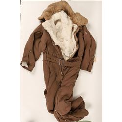 One-piece winter issue flying suit in heavy brown wool gabardine. It has a zip fastener from the crotch to the neck and a concealed buttoned fly. Bo