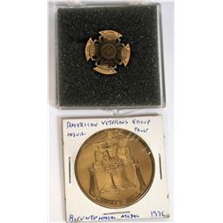 Lot of two: 1976 American Veterans Bicentennial Medal; Veterans Of Foreign Wars pinback.
