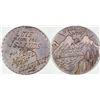 Unique half dollar sized love token. Springtime in the Rockies with mountain scene on obverse; Love / from the / Islands / for / Muriel /from / Clarence, with a palm tree.