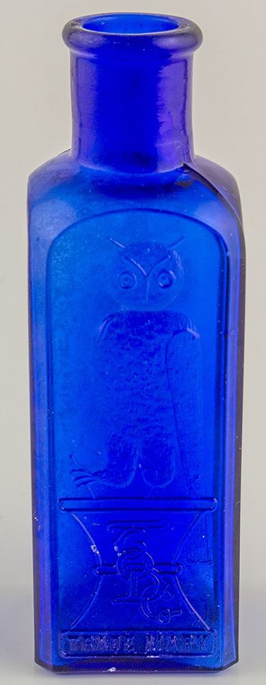 Square cobalt Owl, 6.25" tall, 2.5” wide . Some white stain, never professionally cleaned, no chips or cracks evident. Please inspect. Bold embossing. City: State: Inventory Number: 38953