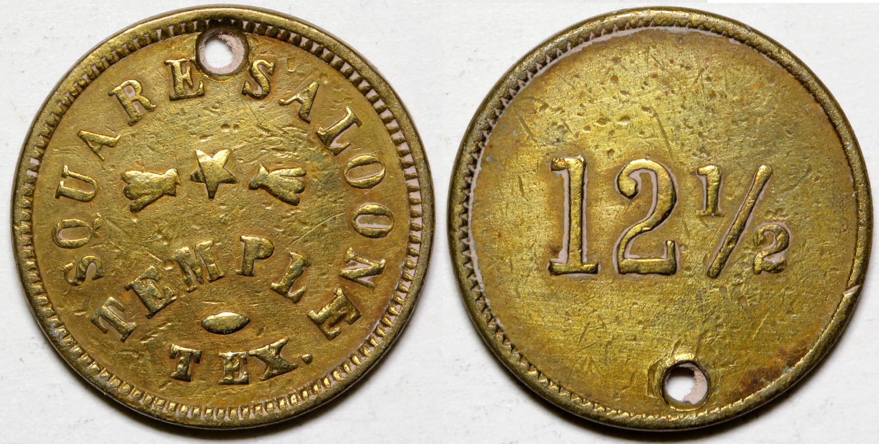 Square Saloon / Temple / Tex. // 12 1/2. Small hole at top. State: Texas City: Temple Date: HWAC# 85364