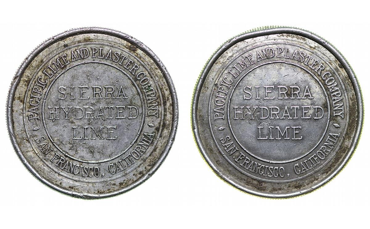 Pacific Lime and Plaster Company, Sierra Hydrated Lime, San Francisco. 40 mm diameter and 12 mm height.