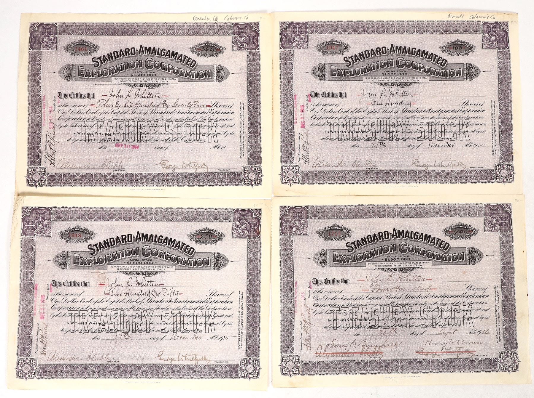 4x 1915-16 Standard-Amalgamated Exploration stocks.