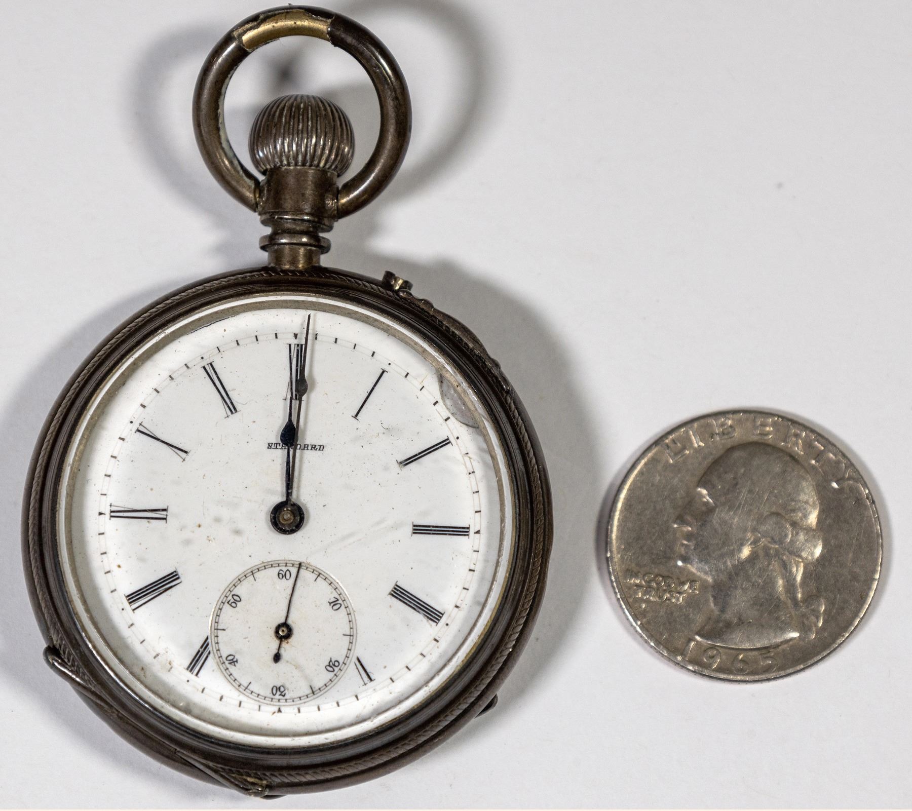 Standard pocket watch, 20813. Engraved on back "JK". Roman numerals with inset second dial. silver is tarnished. State:New York City: Date: Provenance: