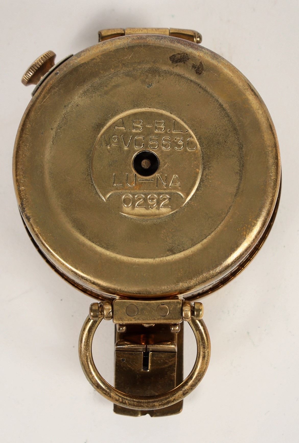 This is a Stanley model G-150 compass marked" A.B.-B.L./NO. VC5630/LU-NA S/N 0292". This compass is made of brass, stamped brass and has a different feel than other compasses. It is also made late 1977-1999 (compassmuseum.com). From the Popovich collection. Please see photo for details .
