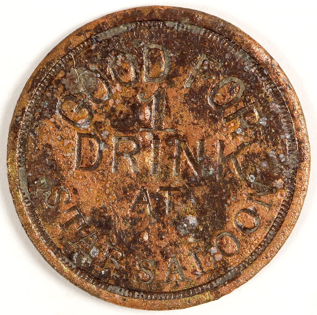 Military Plaza. GF 10c drink. This token was dug in San Antonio and shows damage. Date: Location: San Antonio, Texas HWAC# 62427