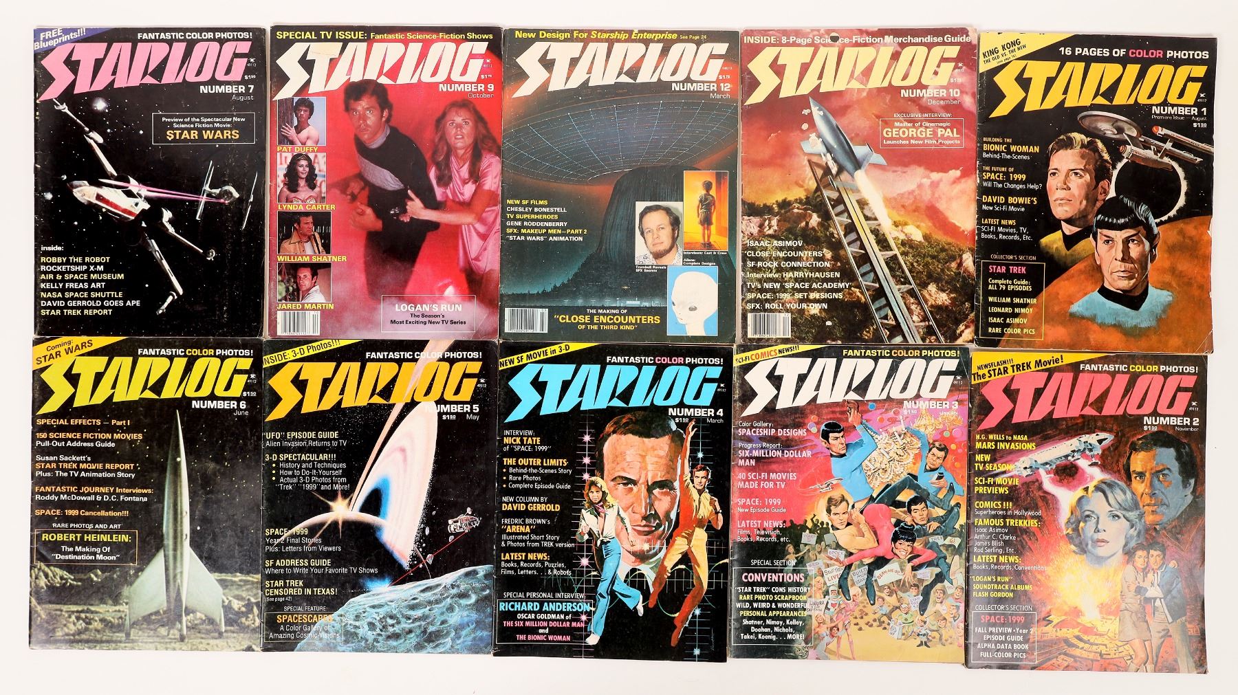 Starlog Magazine issues 1,2, 3, 4, 5, 6, 7, 9, 10 and 12. All in nice condition, no mailing labels. Please see photos for more details. New York 1970s-1980s