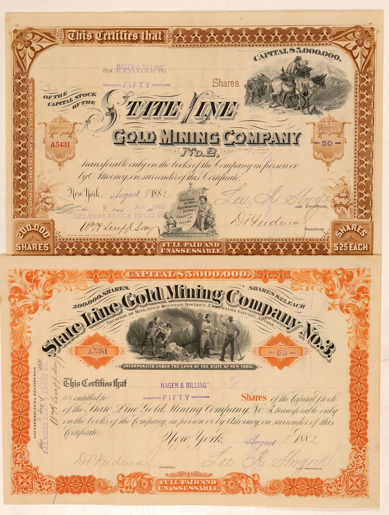 2 i/u. Orange # 5381 Hagen 50 shares 1882 signed by illegible. Brown #5431 Hagen 1882. Ken Prag Collection