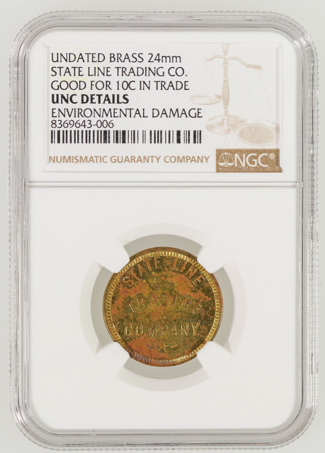 STATE LINE / TRADING / COMPANY // GOOD FOR / 10c / IN TRADE; Br., rd., 23 mm.