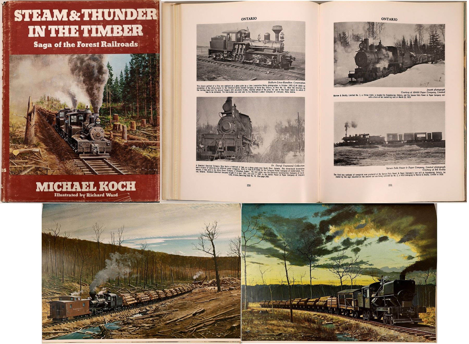 "Steam & Thunder in the Timber," Saga of the Forest Railroads, By Michael Koch (Signed), Illustrated by Richard Ward, LE #2008, Published by World Press, Denver, Colorado, 1979 - This book recounts the fascinating and colorful history of a century and a half of logging railroads that stretches from the Kennebec River in Maine to Puget Sound on the west coast, and from the Gulf of Mexico to Alaska and Canada - It contains 560 pages, 925 black & white photographs, 12 full-color paintings & 22 line drawings - (9" x 11 1/4" HB (Lot 52)