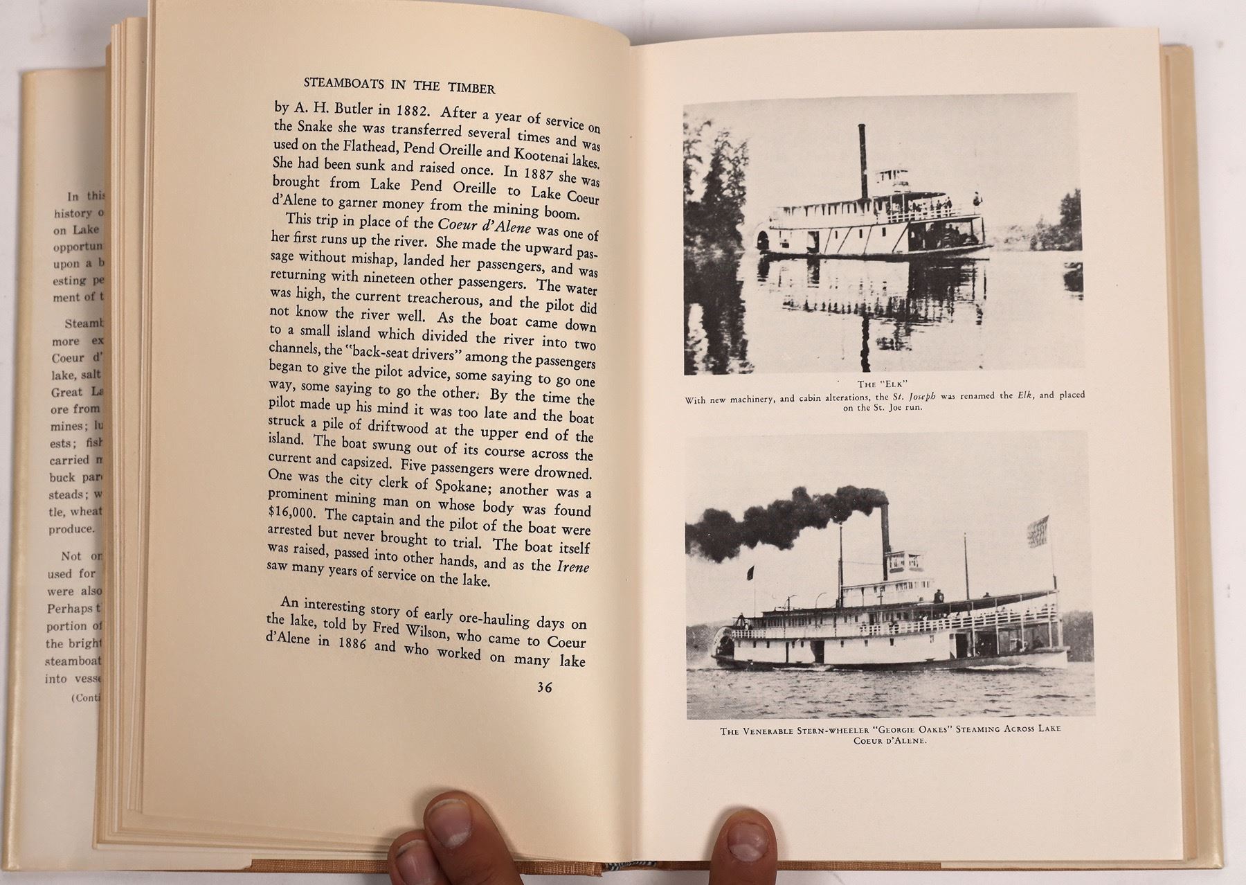 Hardcover, 1953 with jacket. Steamers on Lake Coeur d'Alene and other waters. 209pp with index and illustrations.