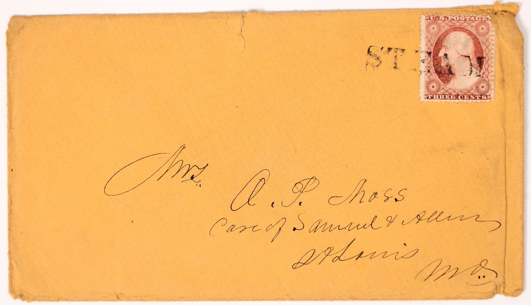 Name of steamer is not mentioned. But a large black STEAM cancels the three cent Washington stamp. Addressed to St. Louis, Mo.