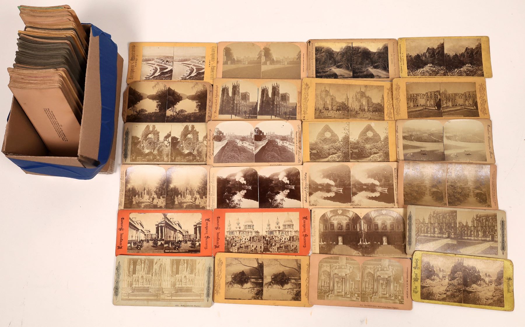 Lot of over 90 stereo view cards circa 1890-1910 from Ireland, Scotland and England. Keystone cards are excellent quality, the older cards are good to fair. State: City: Date: Provenance: