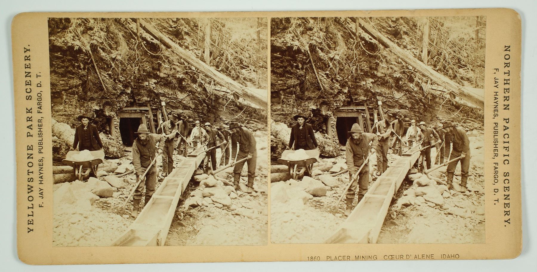 F.J. Haynes Stereoview - Northern Pacific Scenery series #1860 Placer Mining Coeur D’ Alene, Idaho. Date: Location: Coeur D’ Alene, Idaho HWAC# 59678