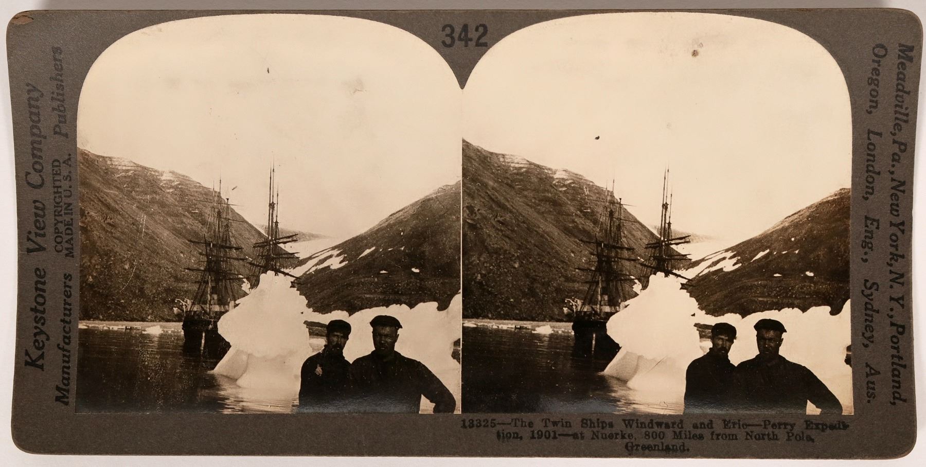 This is a stereo-view photo of ships Windward and Eric in 1901 of Peary's attempt to discover the North Pole. Please see the photo for details.