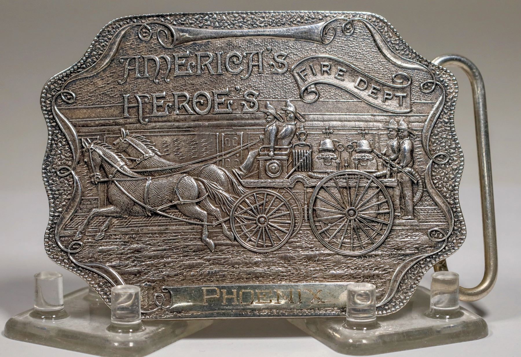 "America's Heroes Fire Department" Sterling Silver Fireman's Belt Plate, by Adina Silversmiths, Ltd.. (A numbered & hallmarked edition- comes with felt case) Beautiful condition.