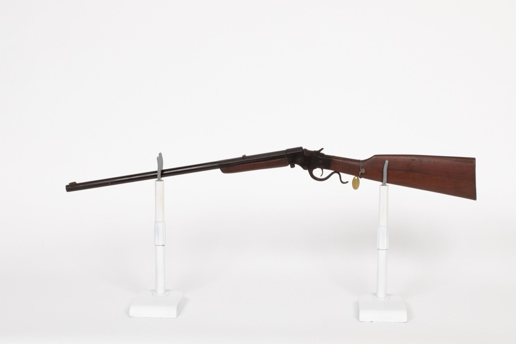 Steven's Arms Company Favorite.32 long, single-shot falling-block, combination octagon/round barrel, blade front sight /notch rear sight, Swiss brass butt plate. SN: 342, JMD Oval Tag: 9074, Condition: Poor, >