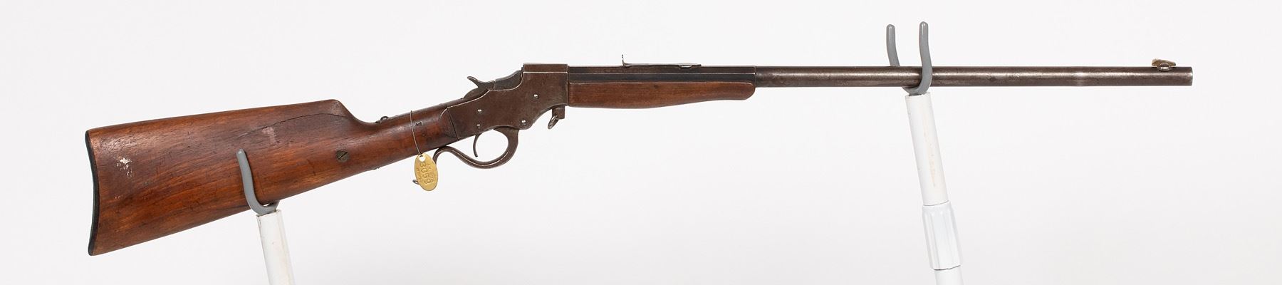 This is a Stevens rifle, lever-action single-shot in .32 long rifle. SN: 459, JMD Oval Tag: 3059, Condition: Good, >