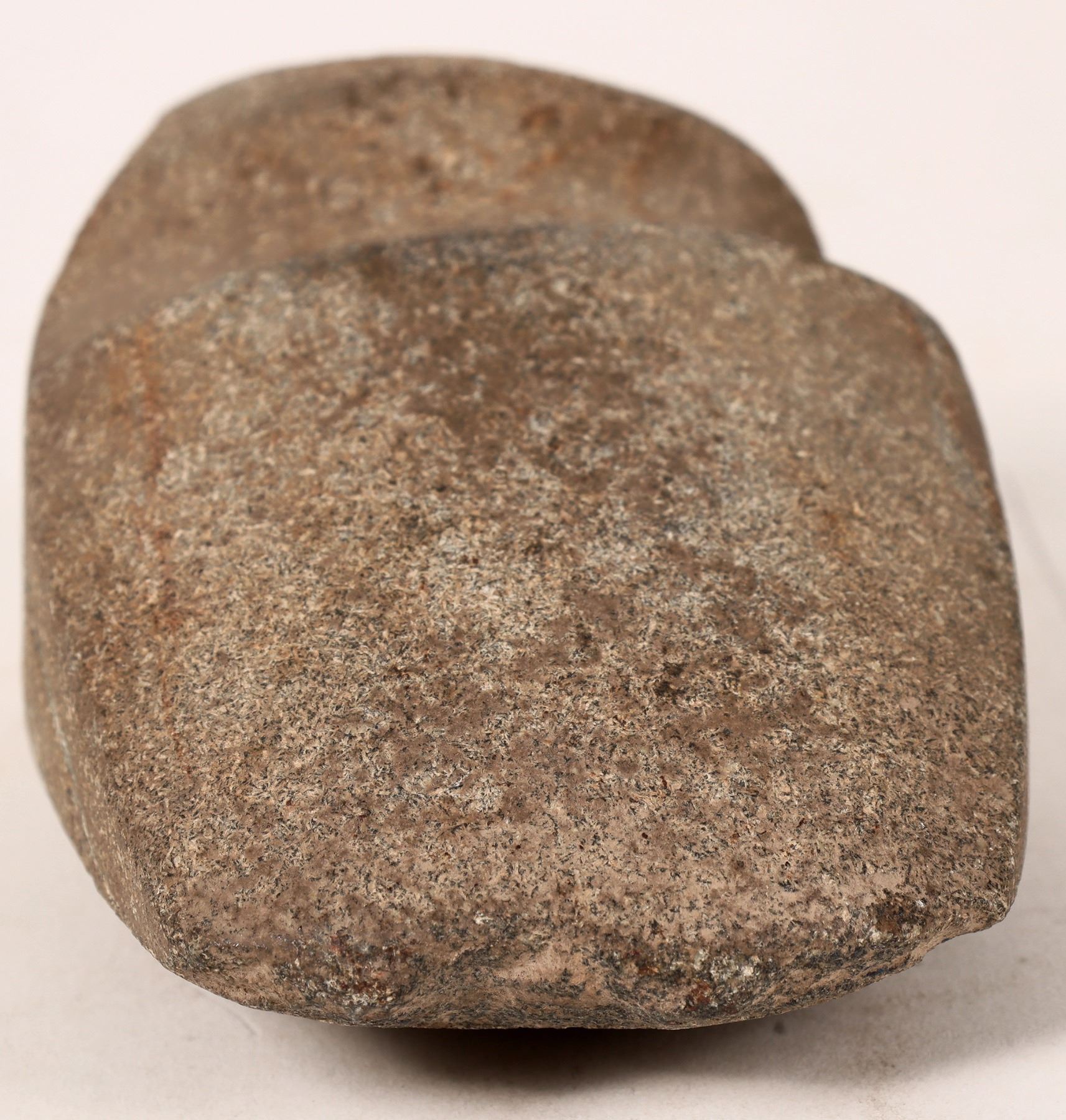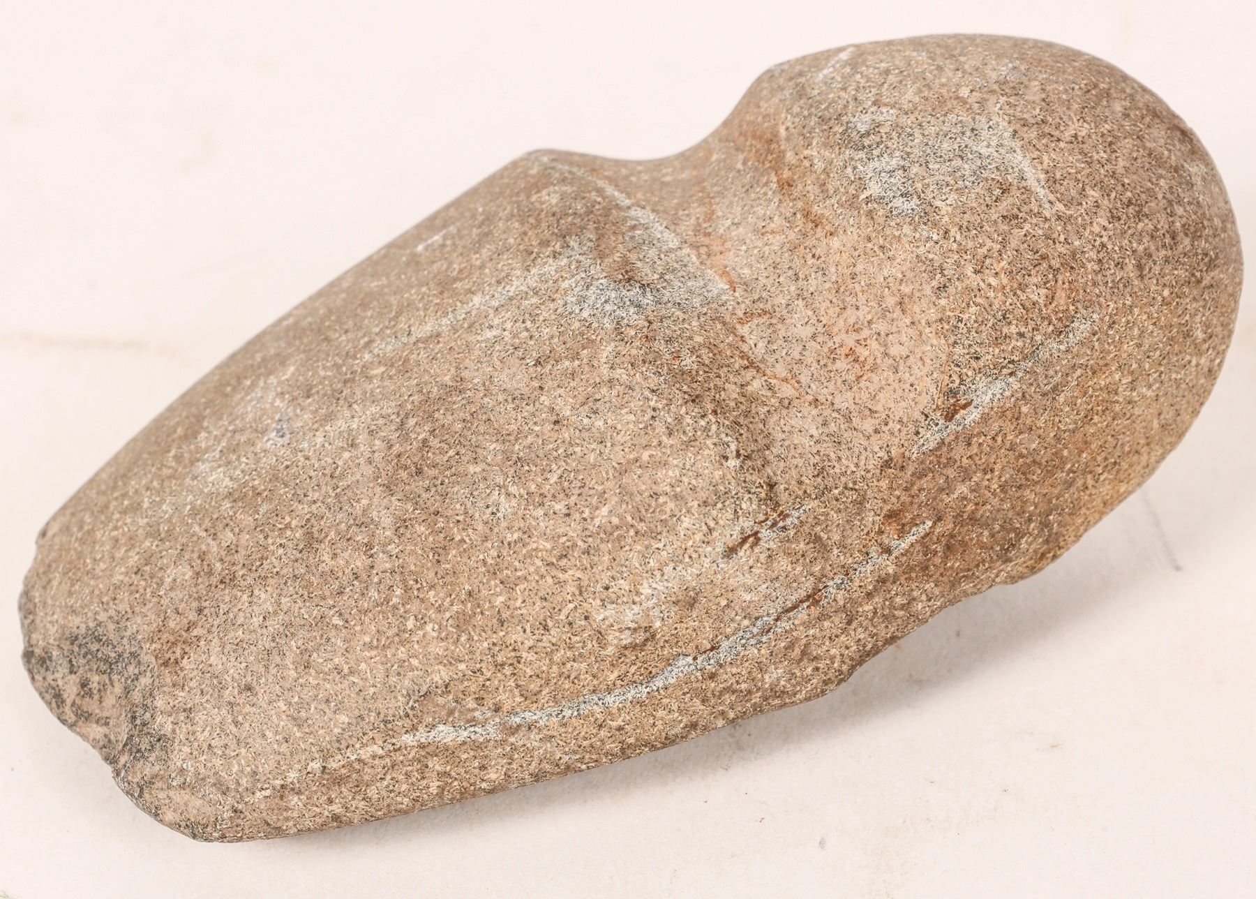 This stone axe tool is 5in. in length, It is grooved 3/4 round with the remaining edge polished flat. 1 lb 10 oz. From the Bracken collection. Please photo for details.