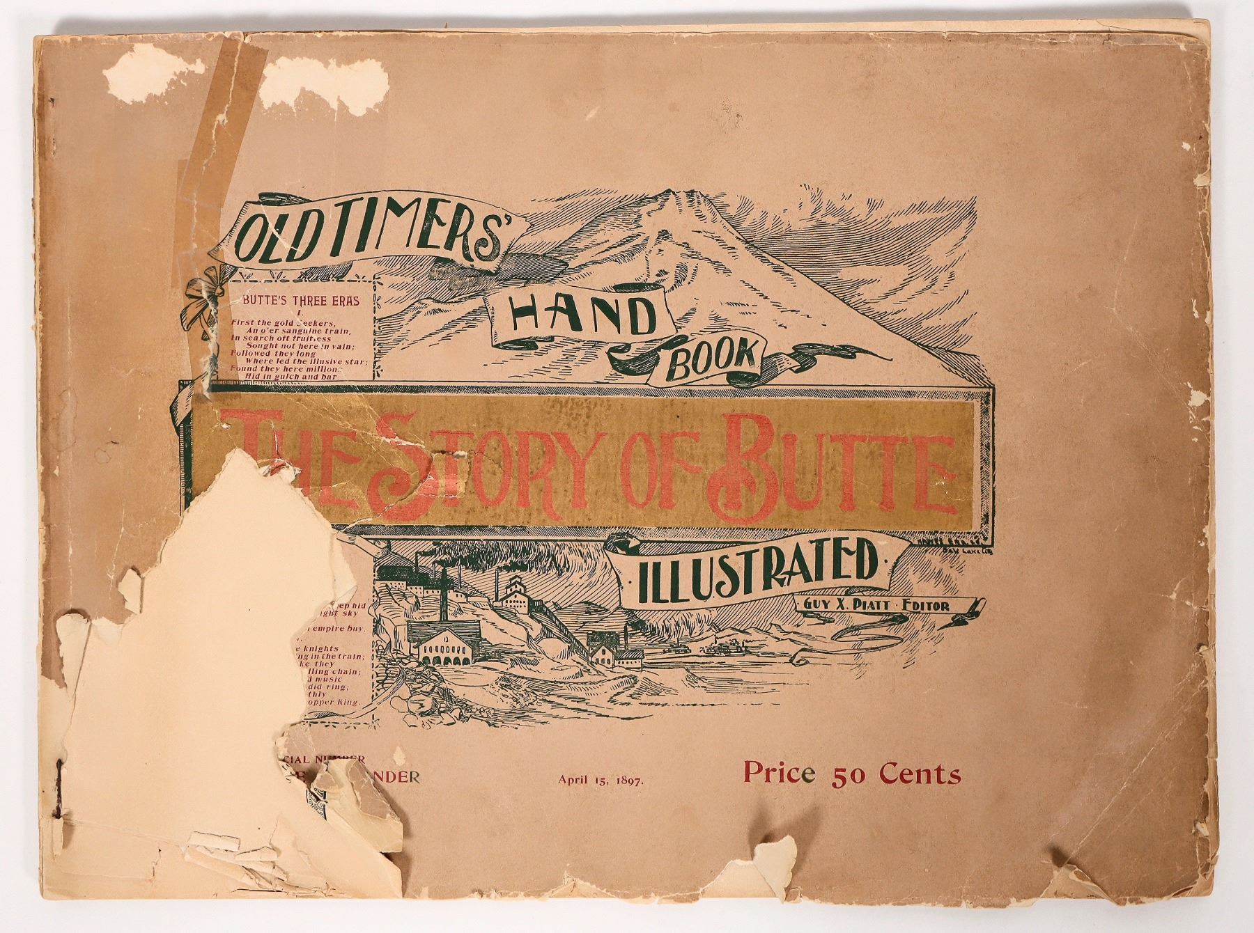 Rare, 1897 The Story of Butte Illustrated, Old Timers' Handbook. Placer mining, notable persons, politics, Northwestern Bottling, Anaconda Mine etc. Front cover in poor shape, lower damage up to page 8, back cover has edge issues. Please inspect.