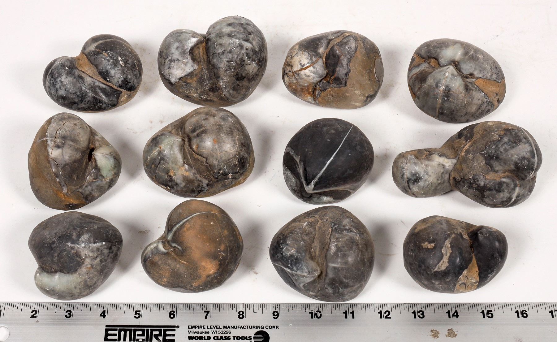 About 12 pounds of stringocephalus fossils. They are the biggest size of single brachiopod. They are shaped like eagle beaks and are about 300 million years of age.Due to their age they can resemble jade. Specimens have been polished and make nice displays.