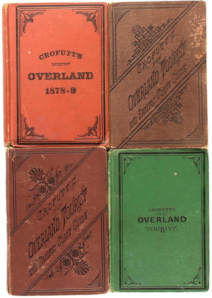 1878-9) Volume 1 of the NEW Overland Tourist and Pacific Coast Guide. Brown cover. Foxing on earliest and latest pages. 1879-80) Volume 2. Blue two-page fold outs. Binding a little loose, but cover and all pages securely attached. 1882) Inscribed William Simpson Jr., May 10, 1882, Bought at Station Omaha Neb. "On my way to San Francisco." One detached page. Front cover separating from pages. Included map has one-half to one inch tears at fold intersections. 1883) Stamped Barkalow Bros. Railroad News Agency, Kansas City, MO. Includes ad for Crofutt’s Grip Sack Guide to Colorado. Water staining shows up on two page illustrations, but does not interfere with the picture. Binding can be seen where cover meets first page. First pages are becoming loose.City: County: State: Date: