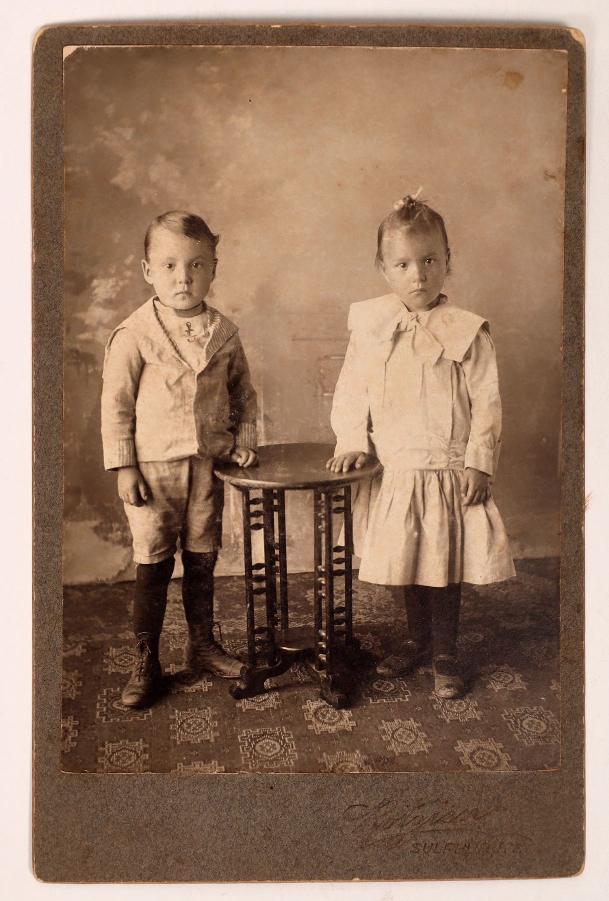 Rare photo of 2 children by Rotzoen?, Sulphur, A. T. 5.5x3.75". Sulfur Alaska