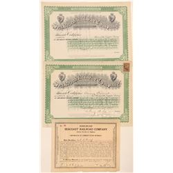 Two certificates. ! Puget Sound Cascaded Railway Co. incorp. 1912. #44, I/C, 1 share common stock @ $100 par issued Jan 14, 1929. BLACK w/gold sun