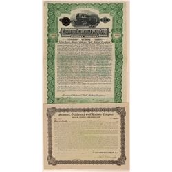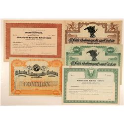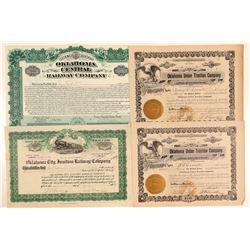 4 certificates. 1. Oklahoma Central Railway Co. incorp. 1904 Oklahoma Territory. #1244 Stock Trust Certificate, I/U, 1 share @ $100 par issued to
