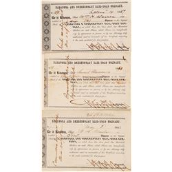 2 certificates. 1. Sandusky, Mansfield & Newark Rail Road Co. of Ohio, incorp. in 1846. #113, I/C, $15 Fractional Funded Bond Certificate iss...