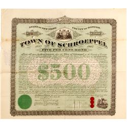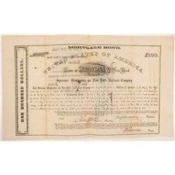 Incorp 1865 New York. #30, I/U, $500 bearer bond, due 1867. Issued April 15, 1865, signed by Pres. BLACK, embossed green seal, vignette top 4-4-0
