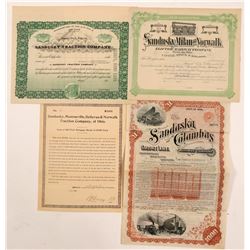4 certificates. 1. The Sandusky and Columbus ShortLIne Railway Co. Incorp Ohio 1891 and stopped service in 1893. #2832, I/U, $1000 5%, 50 yr. Firs
