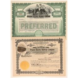 Two U/U certificates . Incorp 1906 Oregon. 1. #84, @ $100 par dated 190_. Vignette electric street car w/#2 O.E. RY. CO. in gold letters. Bottom