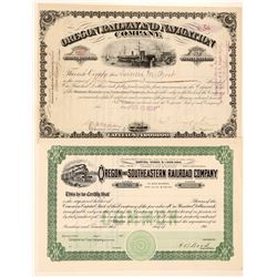 Incorp. 1890 Oregon. #11, I/C, 231 shares @ $100 par issued to C.P. Huntington April 16, 1890. Signed V.P. and secretary. BLACK, no vignette. embos