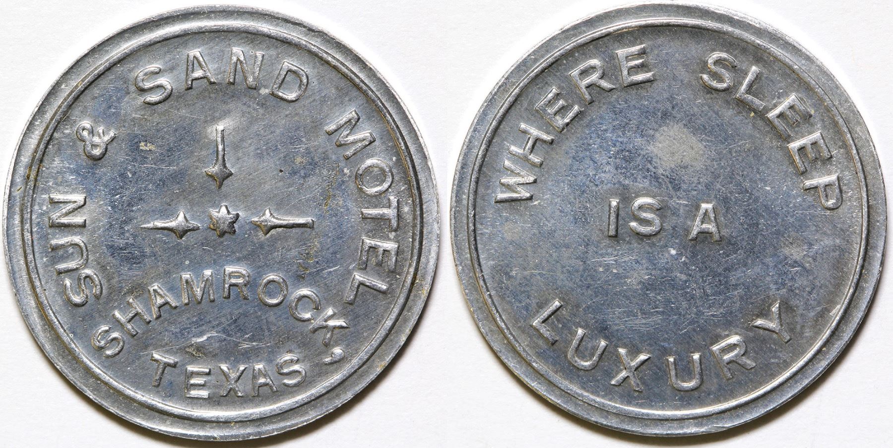 Modern advertising token from town located in the panhandle section of Texas HWAC# 62710 Date: Location: Shamrock, Texas