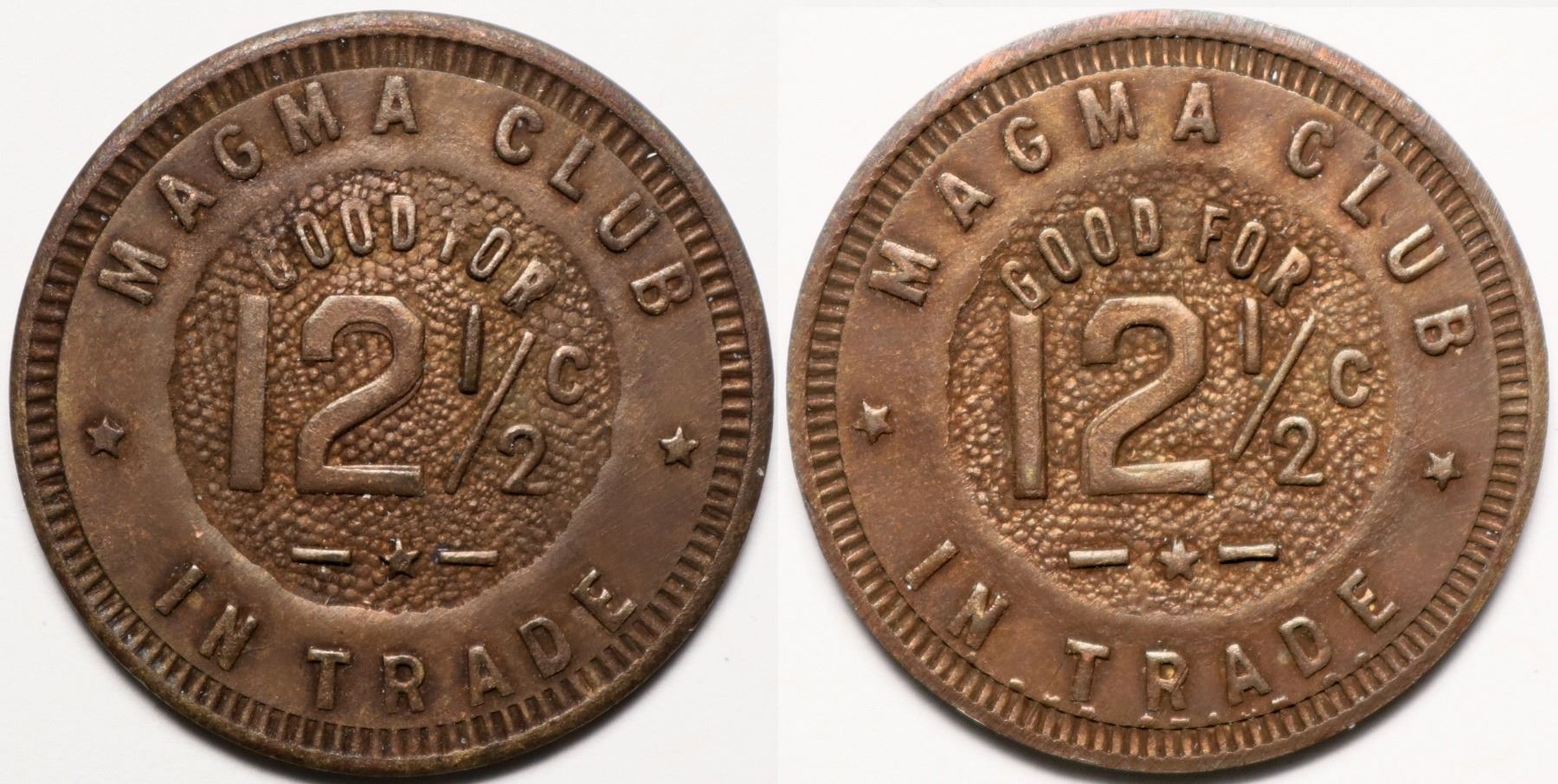 Magma Club / Good For / 12.5c / In Trade // (reverse same). Brass. 10mm.
