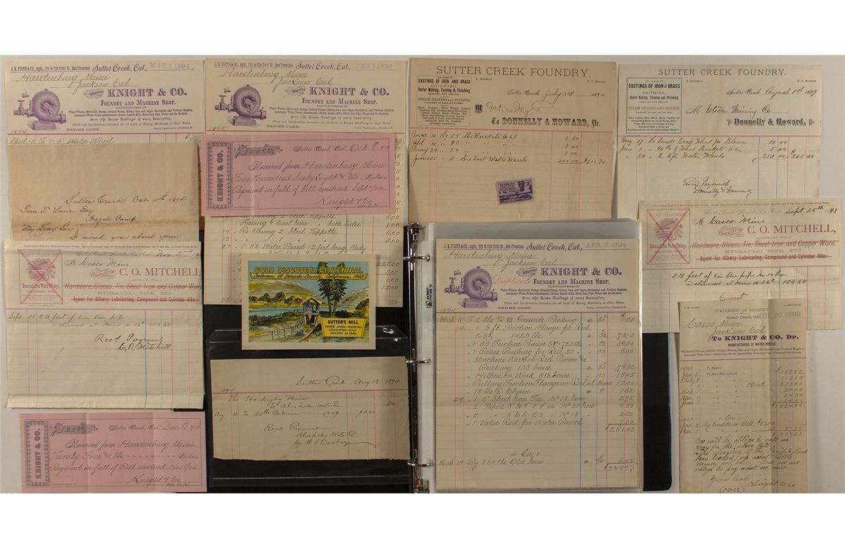 48 pieces. Knight & Co. foundry billheads (many). Letter to T. Lane about the Hardenberg subscription to the Mok. River Bridge (toll). C. O. Mitchell billhead. Sutter Creek Foundry billhead.City: Sutter CreekCounty: AmadorState: CADate:
