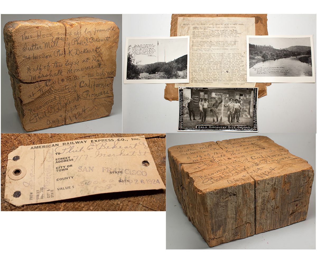 This is literally a piece of history that changed the world... an original artifact from the California gold discovery site, the only one in private hands! Woodblock measures 11x11x5¾''