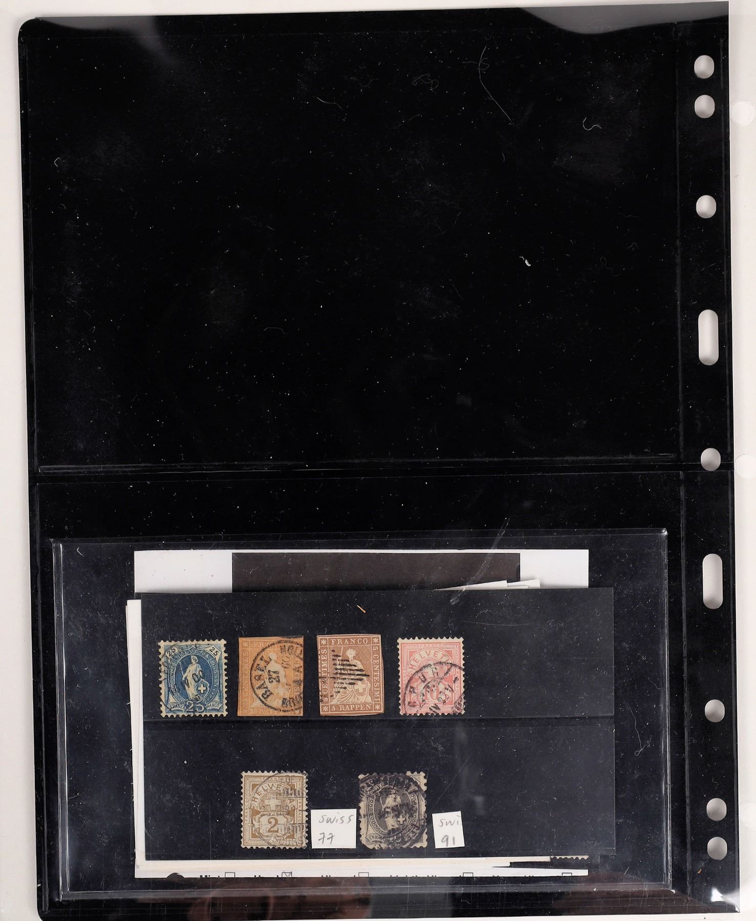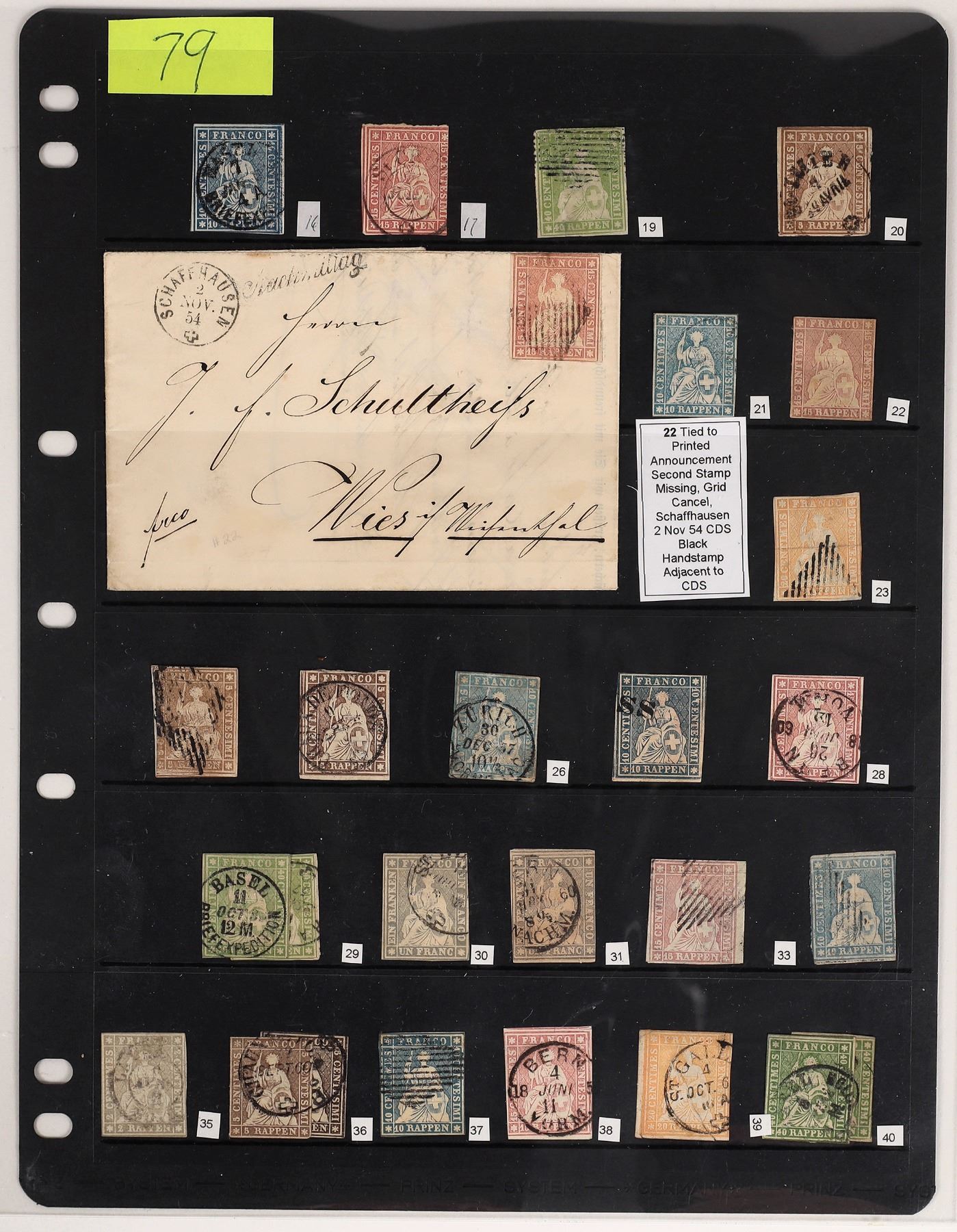 Switzerland 1854-1881 Sitting Helvetia Issues. Scott #16//65, 47 stamps and 12 covers, best items 1855 1fr and 1862 2r used with Sisimondo certificates. Condition mixed as expected, please see scans.