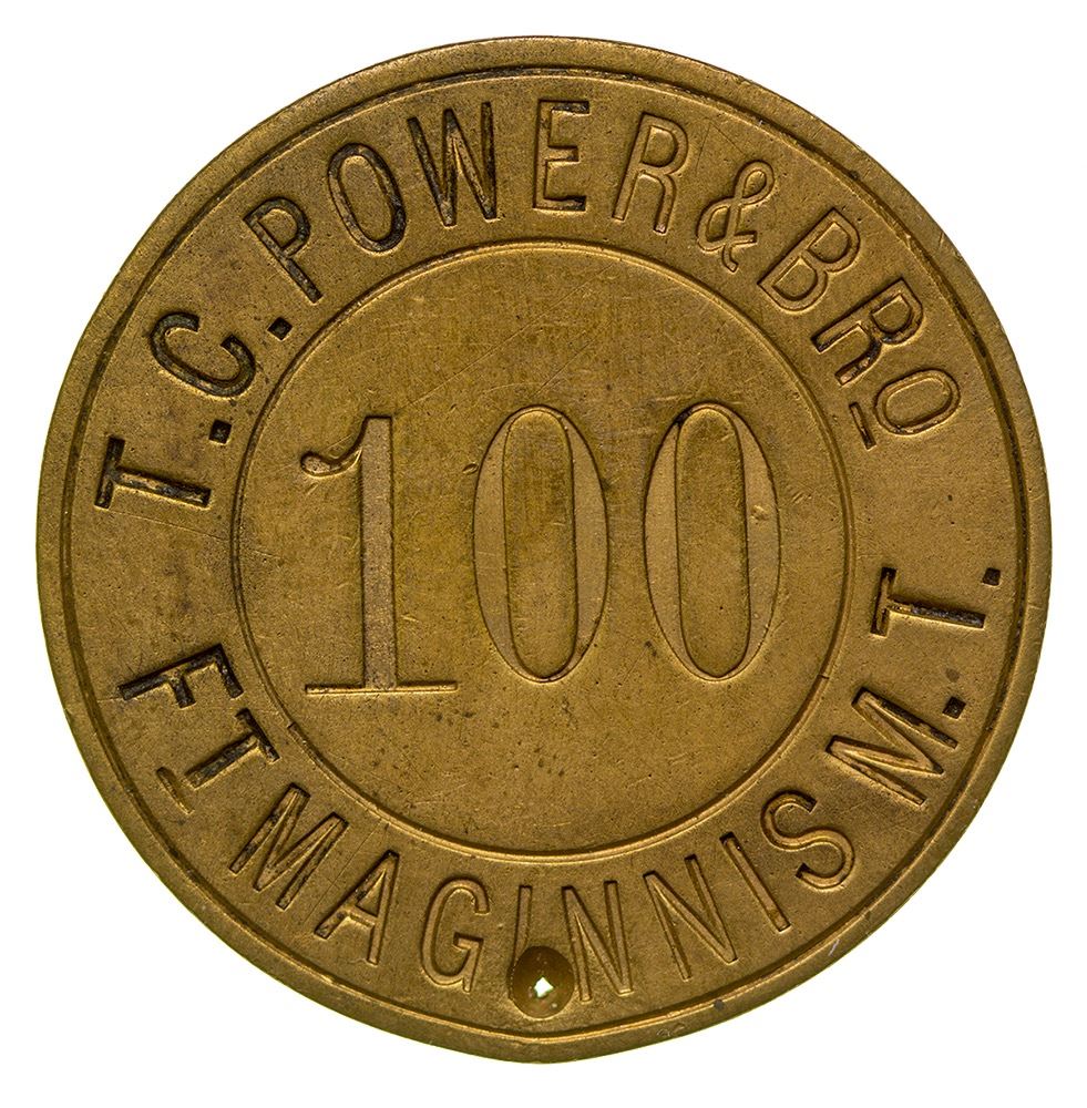 Obv.: T.C. Power & Bro. / 100 / Ft. Maginnis M.T. Rev.: blank; 35mm, Rd., R-12. City: Fort Maginnis State: Montana Date: ID: 36455