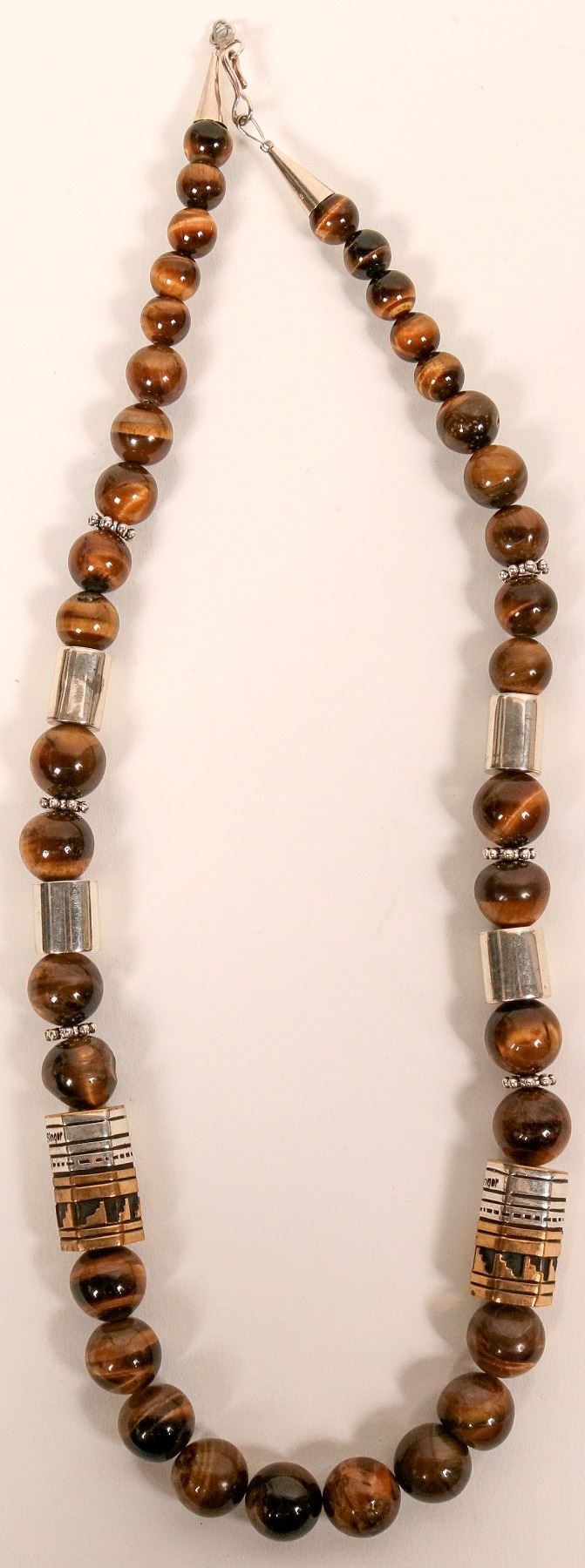 This necklace is also by the Singer Family, marked T&R Singer, and is composed of beautiful Tiger Eye beads with silver spacers, measures at about 10” top to bottom.