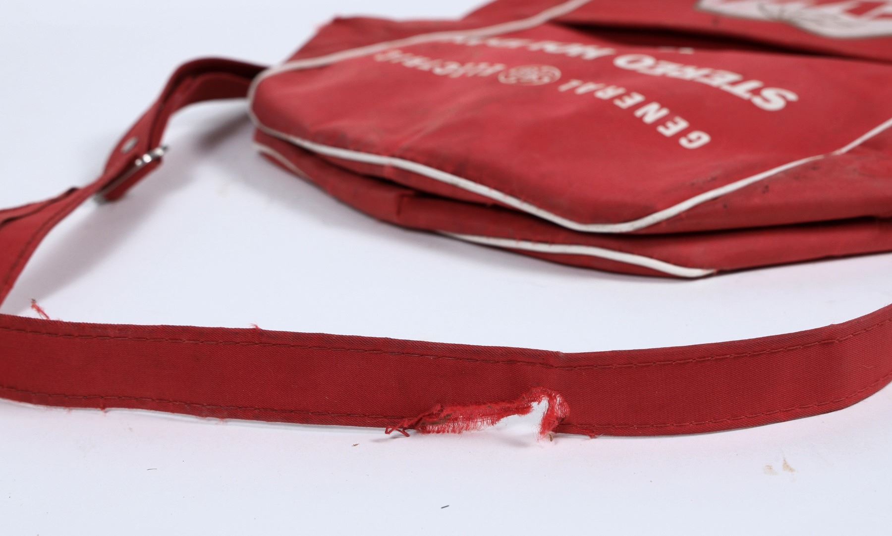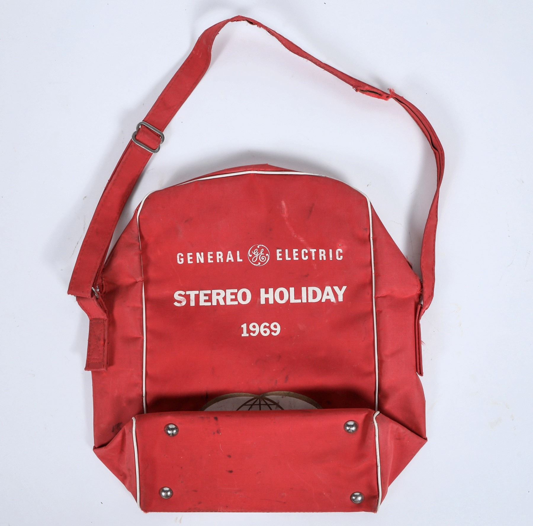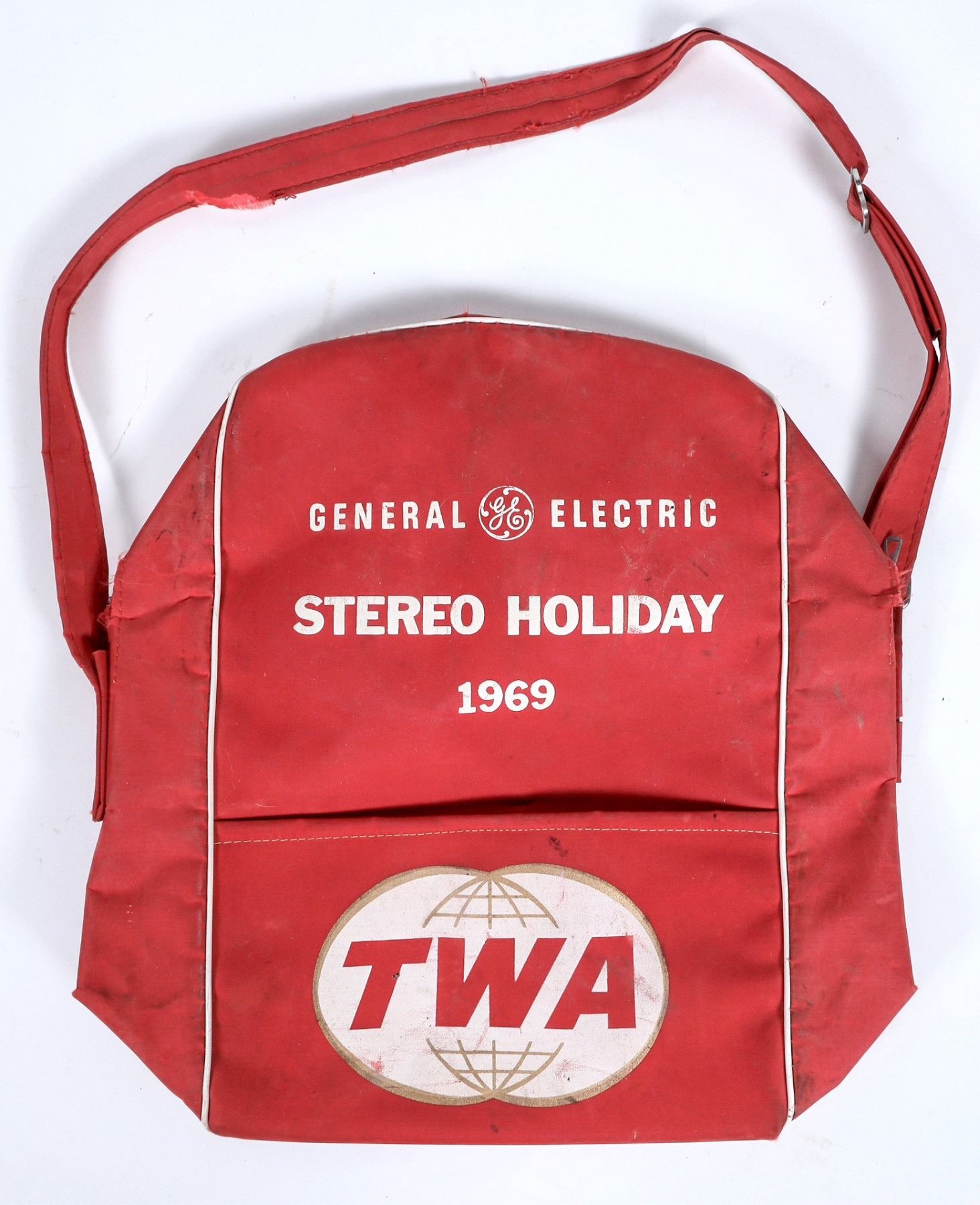 TWA/Stereo Holiday/1969 shoulder tote with strap. Strap has wear. 14x9.5". Some soiling. Please inspect.