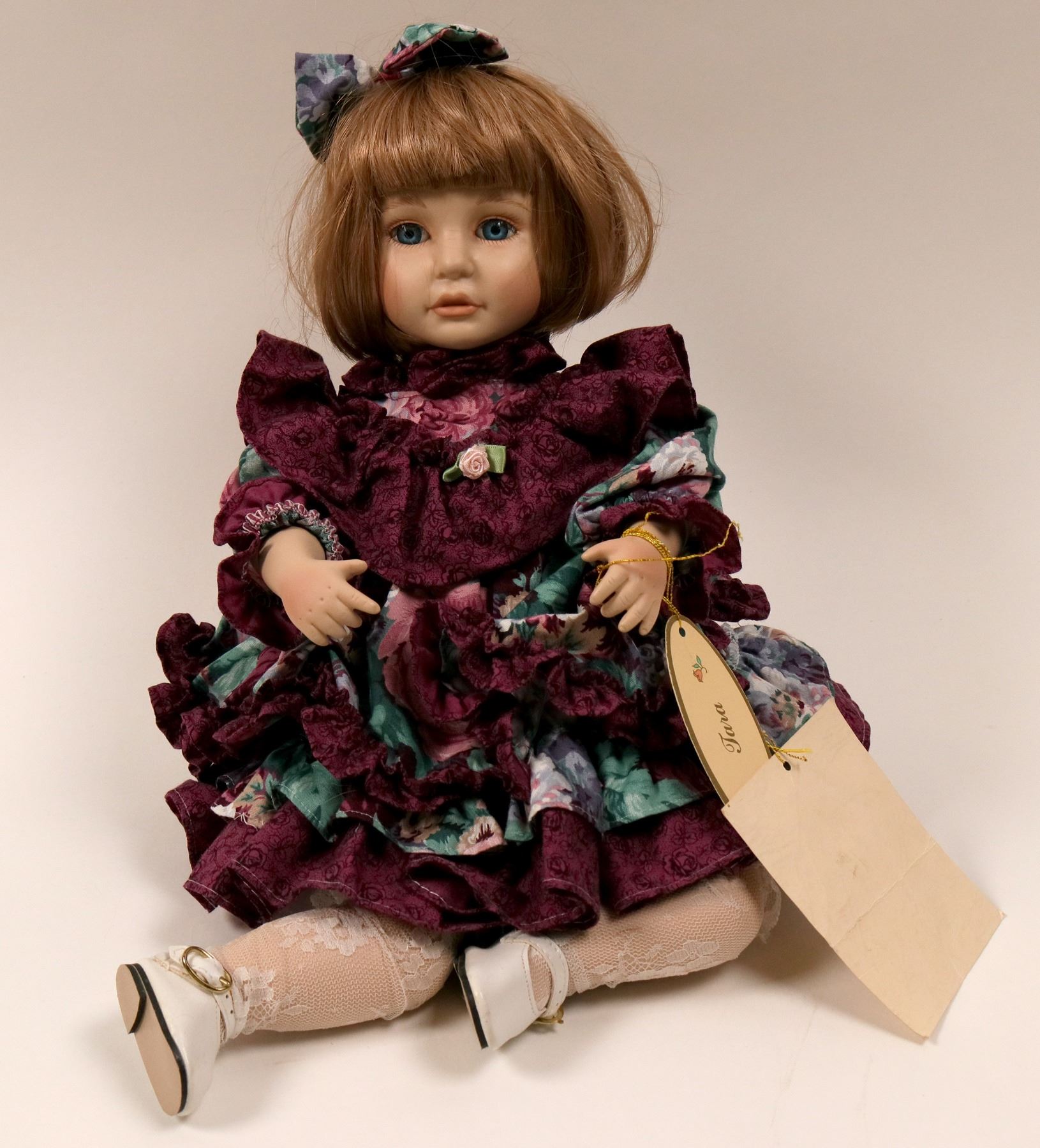 This is a lot of two dolls; one is TARA by Elizabeth Gray ( 12 in.)and the other is "Peaches and Cream" by the Ashton-Drake Collection (at 15 in.). Tara is without a box but very nice to hold and Peaches and Cream has her own box. Both in very good condition.