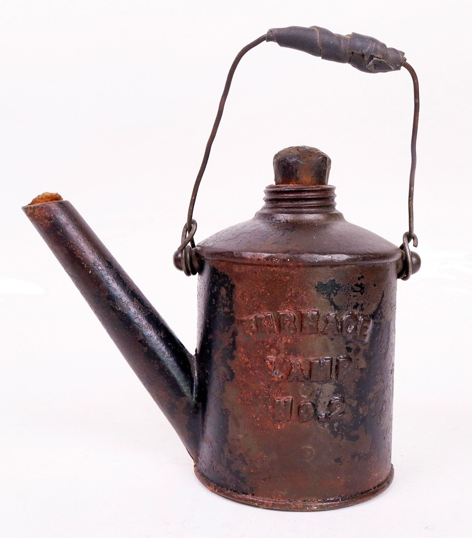 Cast iron. Furnace Lamp No. 2 from The Taylor & Boggis Foundry Company, Cleveland, Ohio. Reported to have been used in the Sadtler Mine in Dueneweg, Missouri in the 1890s. 6.5" tall, 4" diameter. Missing top.