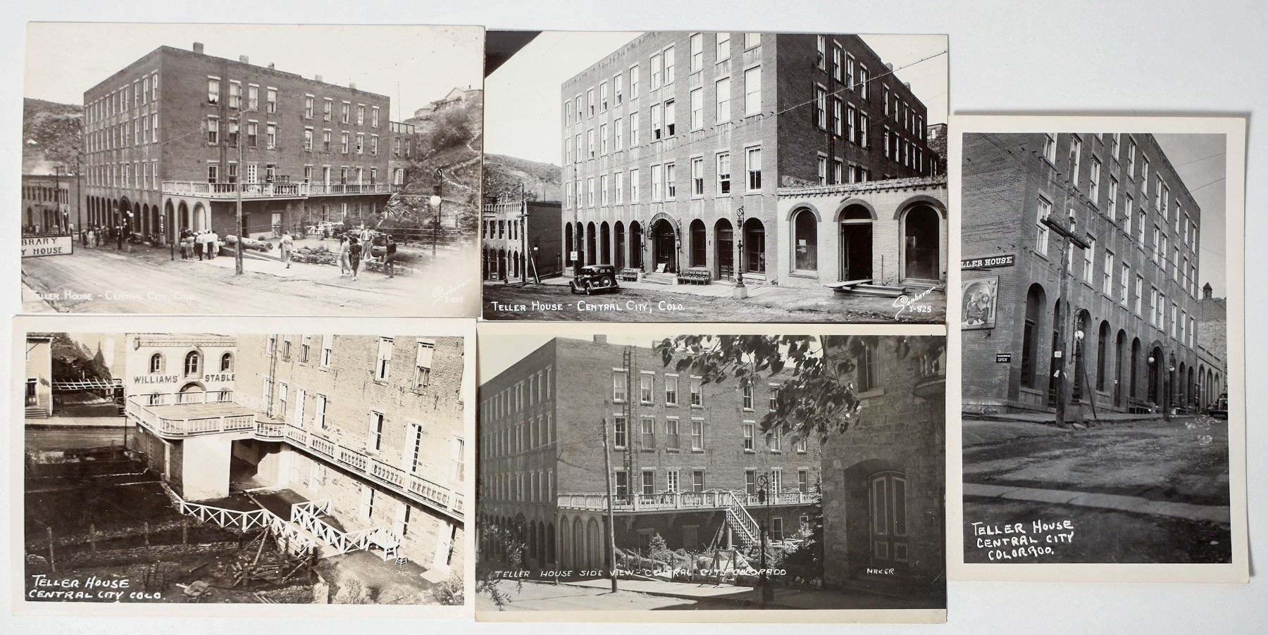 5 different postcards of Teller House in Central City, Colorado. All of them are in a sleeve.