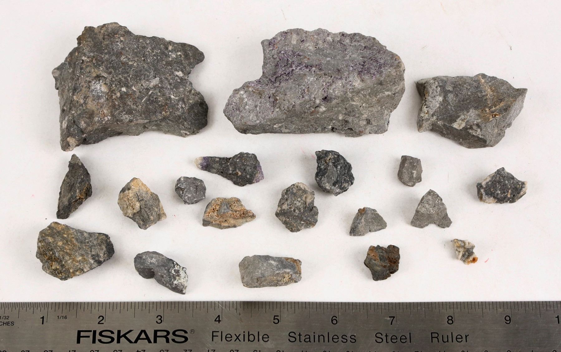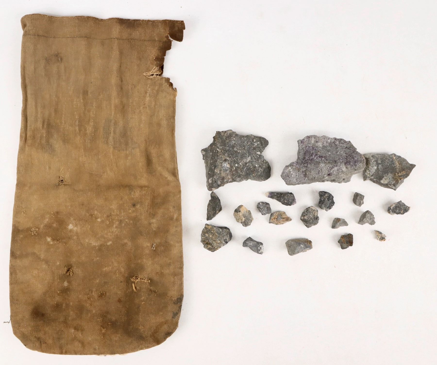 An original canvas bag found underground with high grade ore sample. Includes creedite and misc. sulfides. About one pound broken ore.