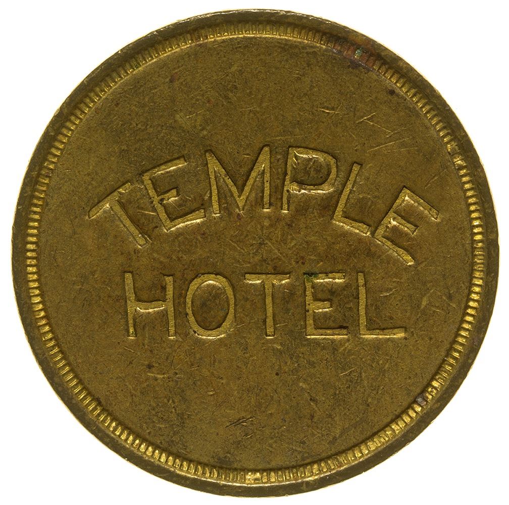 Obv.: Temple Hotel (incuse); Rev.: blank. Rd., Br., 24mm. Near uncirculated example of this token. City: Manti State: Utah Date: ID# 45249