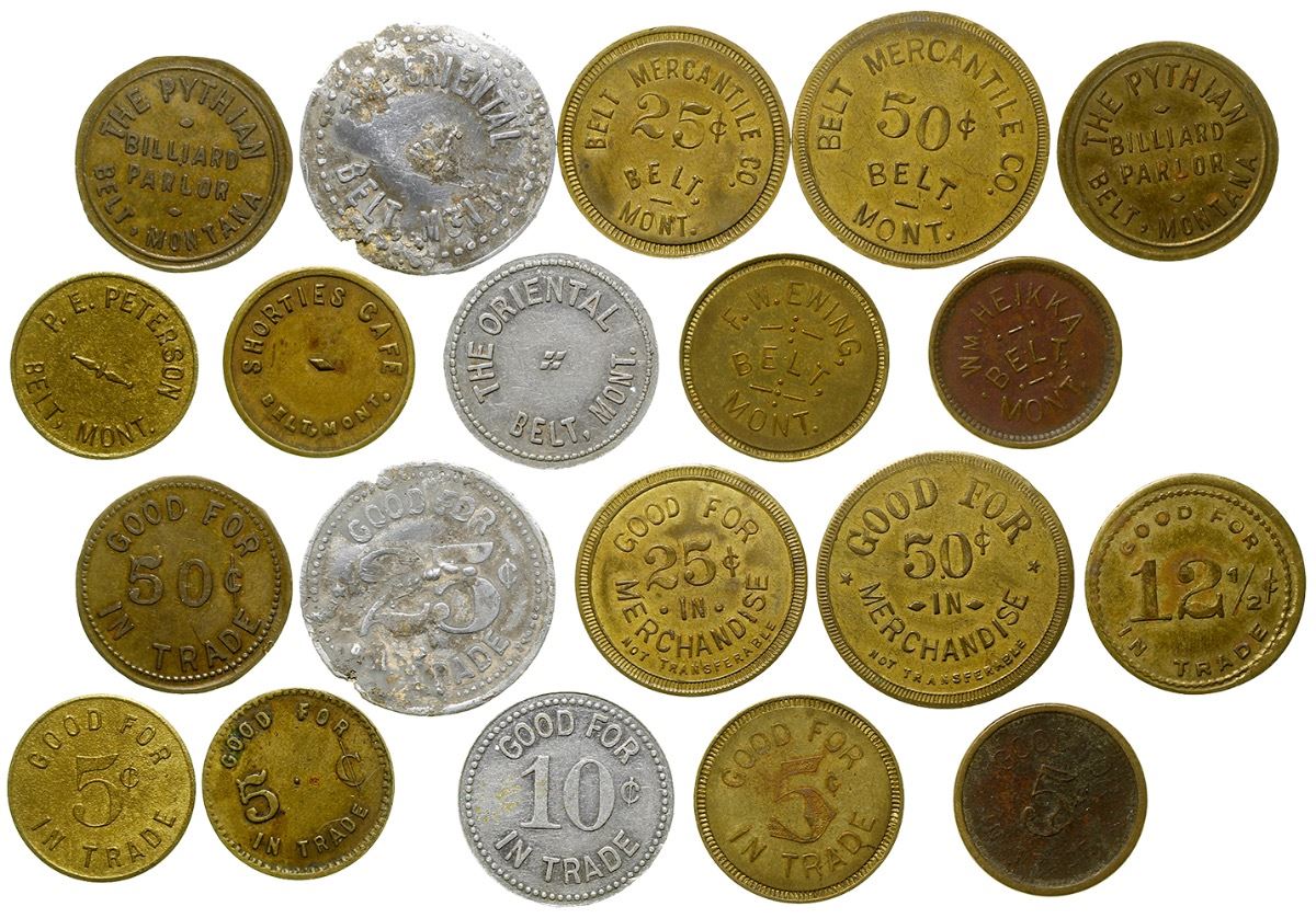 Lot of 10: The Oriental (2), P.E. Peterson, Belt Mercantile (2), Shortie's Cafe, F.W. Ewing, Wm. Heikka, Pythian Billiard Parlor (2). City: Belt State: Montana Date: ID: 37119