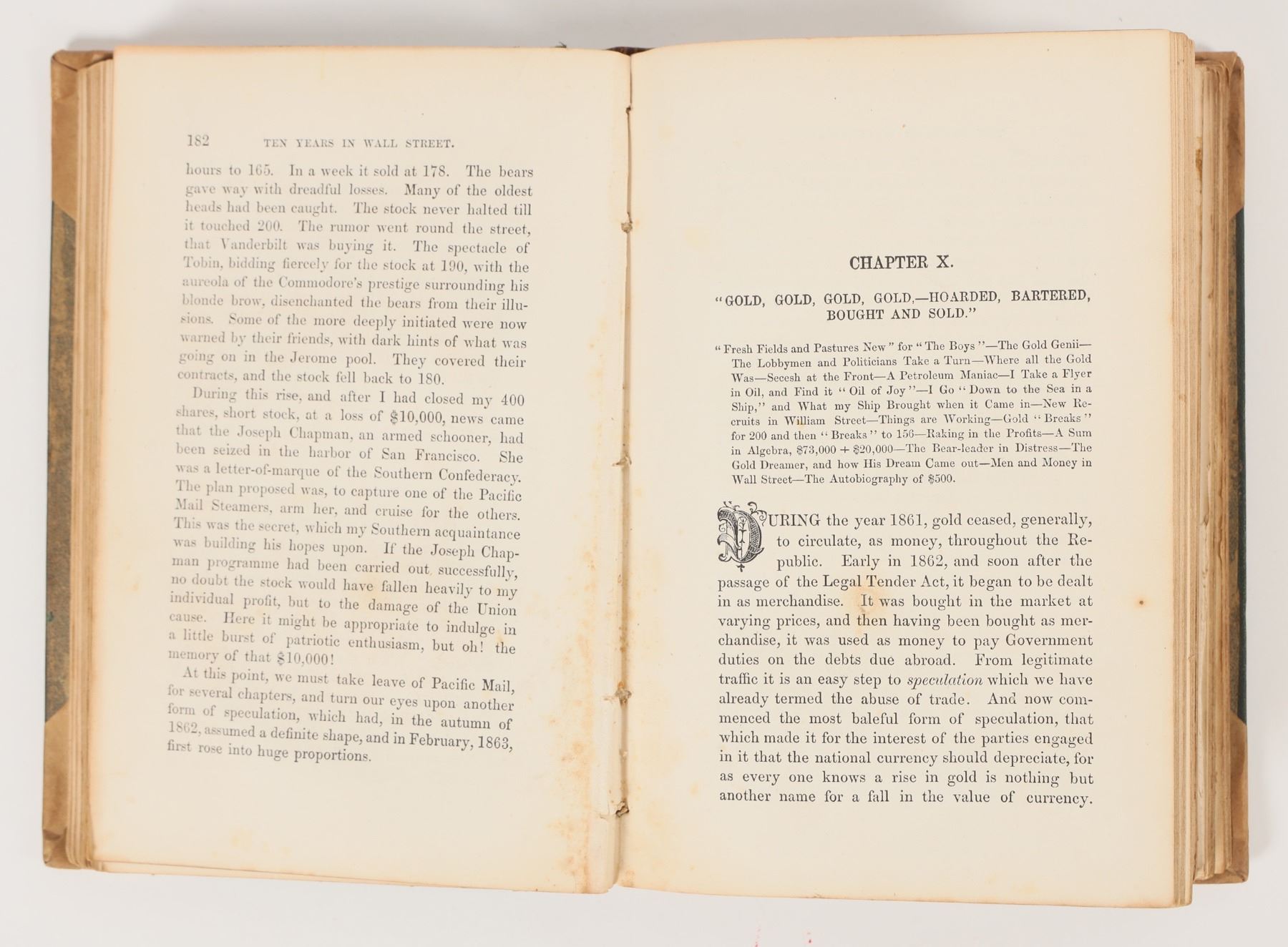 Ten Years in Wall Street by WM. Worthington Fowler. Illustrated by Arthur Lumley. Published by Worthington, Dustin, & Co., Hartford Conn. 1870. First Edition. Hardcover. 536 pages. Missing pages (see note below) Revelations of Inside Life and Experience on Change. U.S. History and the Stock Market during the late 1800s, the role of women, personal experiences, etc. Condition is rough, consistent with age, please examine photos carefully. Pencil written note inside front cover: "Pages 317-322 inclusive, 437-438, 457-474, 509-510, 523-524. I find more pages missing than recorded above when I bought this book but I have no regret. I am satisfied. Jan 12, 1952."